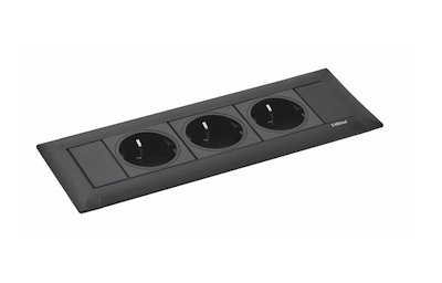 EVOline Frame Dock er en fleksibel og elegant stikklist laget for installasjon i møtebord, arbeidsbord, benkeplater og skapsider. Kan konfigureres ut i fra brukerens behov med forskjellige antall moduler for strøm, lading, data og multimedia. Utført i sorte stikk med aluminium list.
